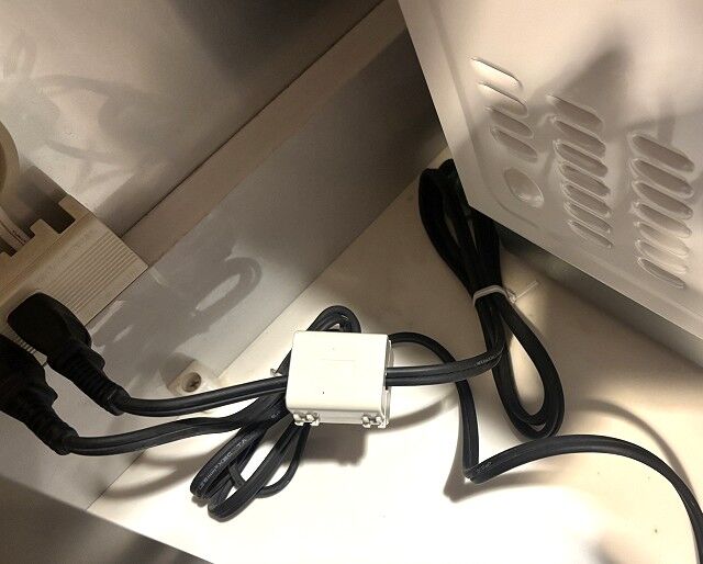 ④ 最後に電子レンジの電源ケーブルにフェライトコアーをいれてみました。