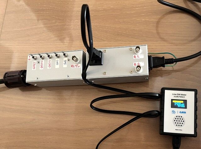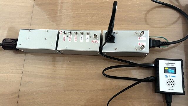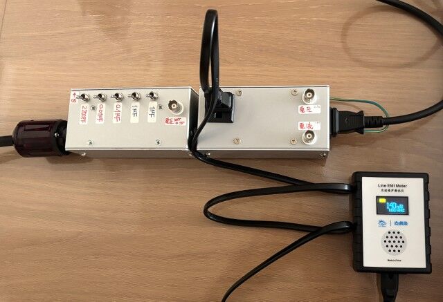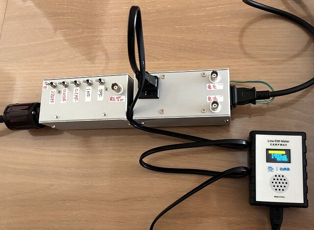 前回の測定では広帯域のスペアナ等を使いましたが、測定時の外来ノイズが多くて測定が大変でしたので今回は「EMIメーター」を使いました。