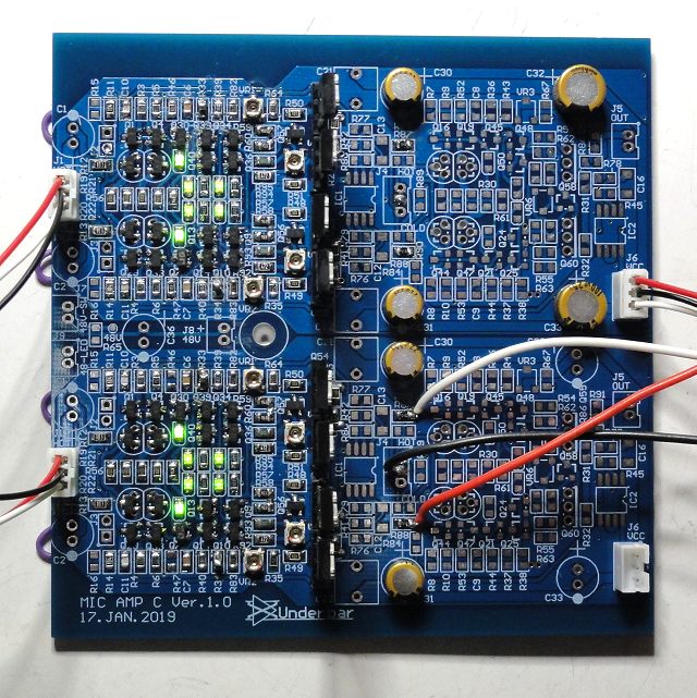 ジャックを別基板にして、線材でメイン基板(アンプ基板)に繋げています。