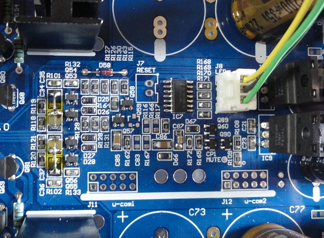 この部分を単独基板(独立基板)にして置くと、メイン基板(アンプ基板)の交換をしなくても済むので交換部品のコストと修理工数を減らすことができます。